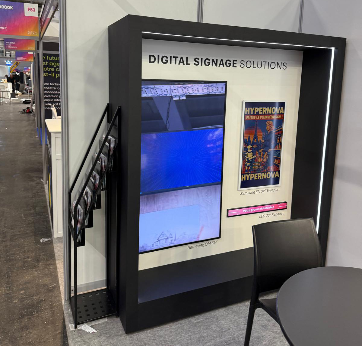 We presented our digital signage solutions, including classic displays and e-paper screens. E-paper attracted particular attention thanks to its: low energy consumption, easily replaceable batteries, no cabling required, simple content updates and zero consumption once the image is displayed. A major asset for equipping large retail networks sustainably and cost-efficiently.