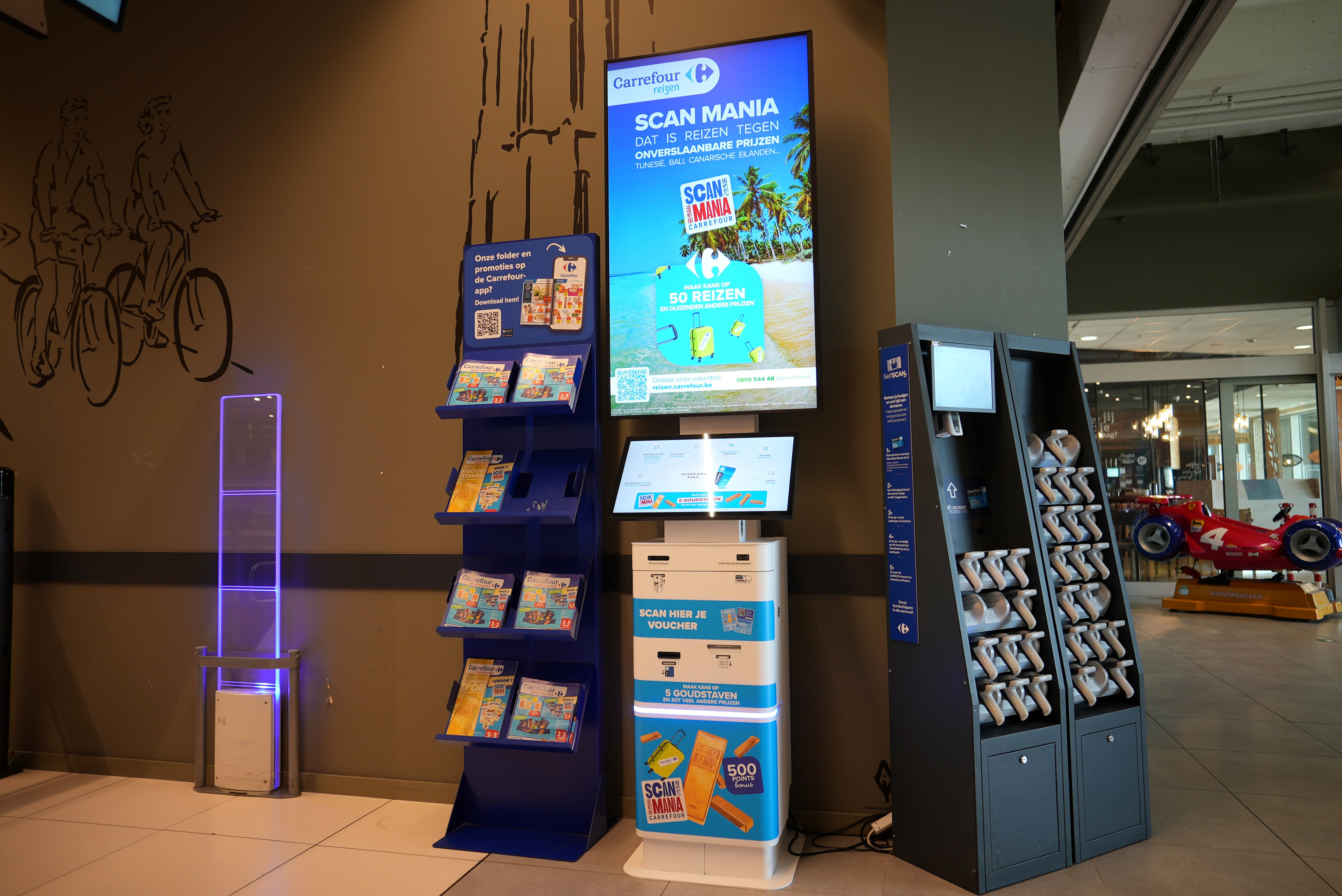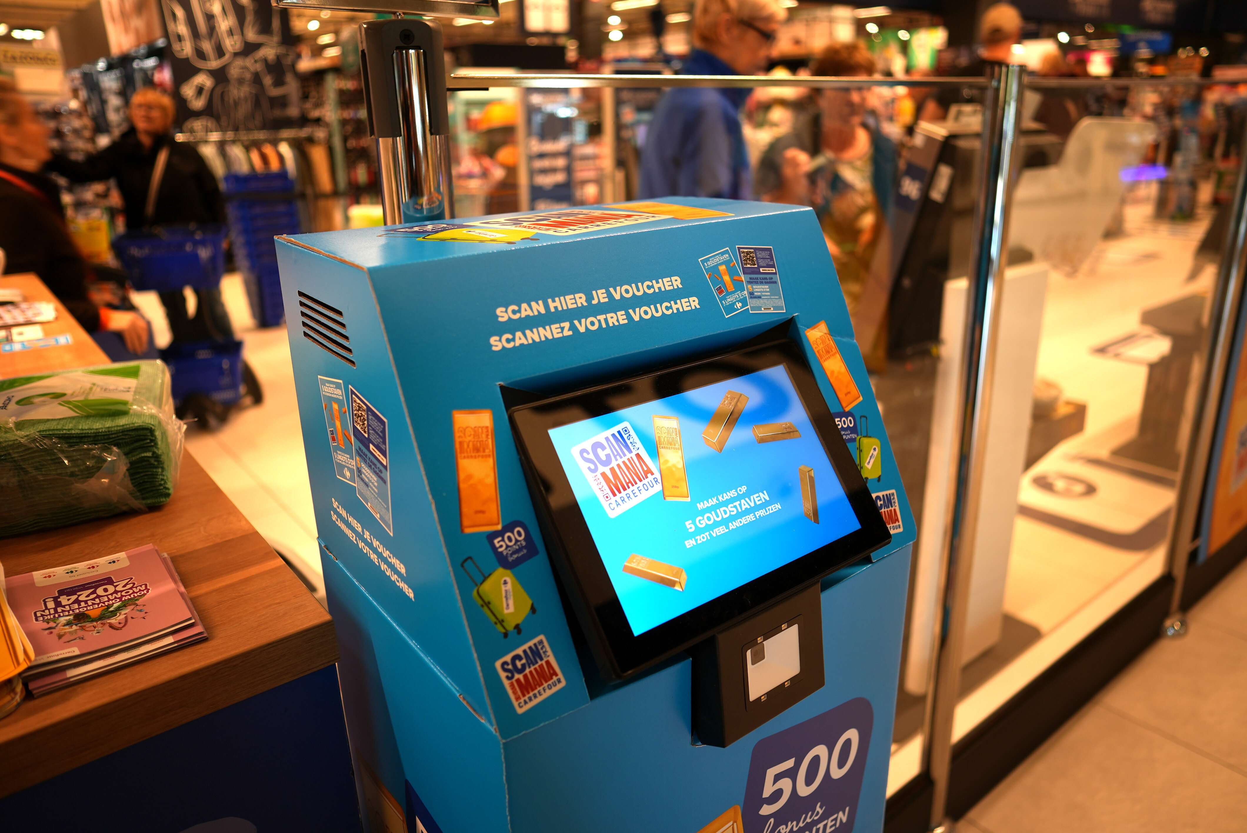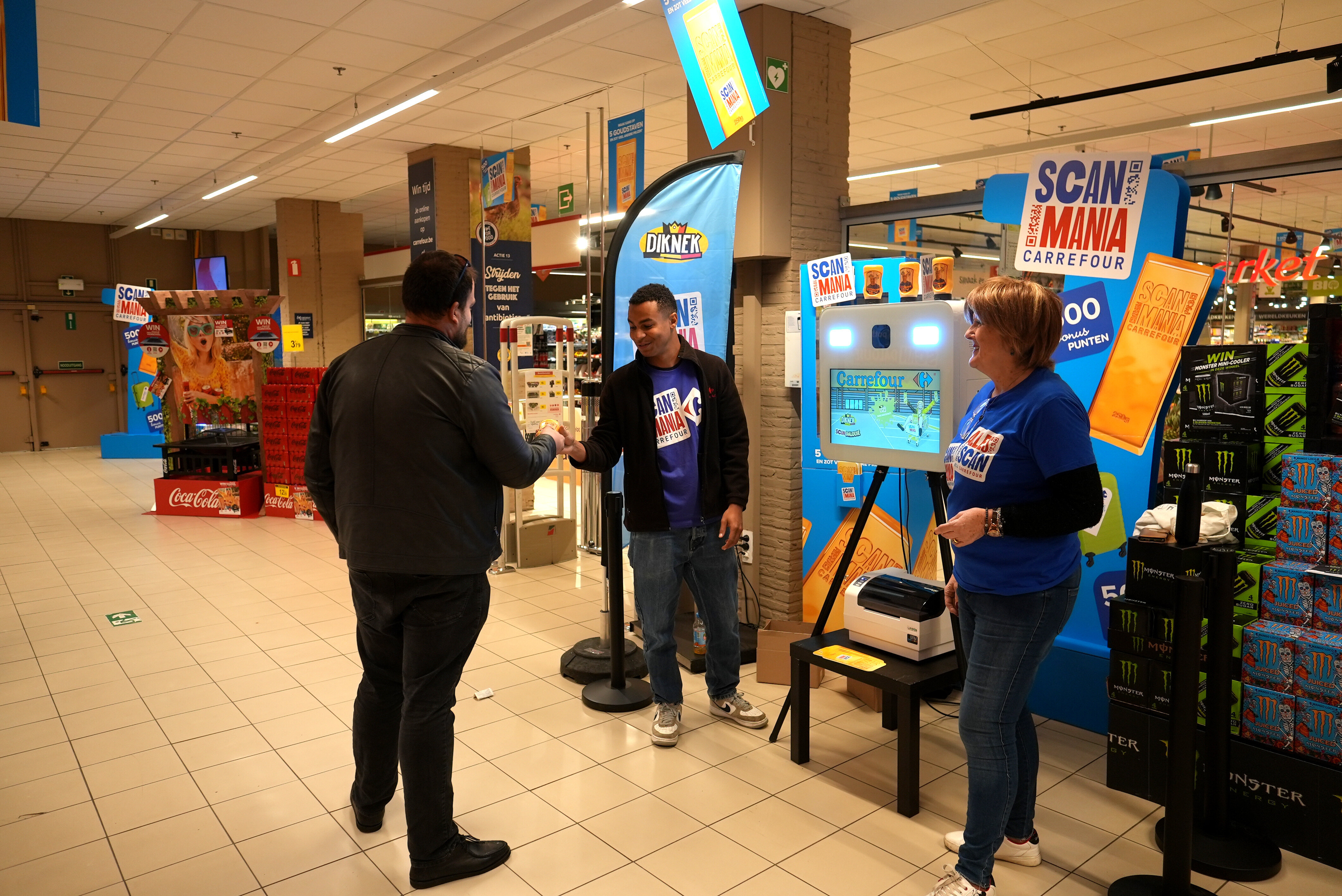 At Shelf Service, we’ve developed advanced expertise in Retail Media by merging technological innovation with a strong on-the-ground presence. The Scanmania example for Carrefour Belgium is a clear demonstration of this approach. As part of the campaign, we installed event kiosks in stores—compact touchscreen PCs with a scanner that allows customers to scan a QR code from a voucher they receive at the checkout. This system is designed to involve all customers, including the 52% who do not use smartphones in-store (according to an OpinionWay/Proximi study, January 2021, France). This makes the promotion more accessible while enabling centralized and digitized data collection through Carrefour’s Bonusland platform, developed by the Shelf Service Digital Lab.