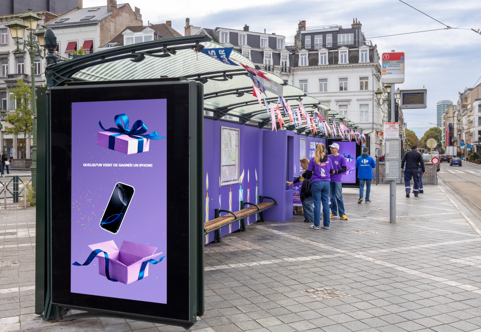 In de brandzone Louise van JCDecaux – sinds 2013 bekend door Stromae’s videoclip Formidable – gingen op 24 september om 7 uur ’s ochtends de festiviteiten van het 25-jarig jubileum van Carrefour van start met de lancering van een originele, digitale ‘Scratch & Win’.