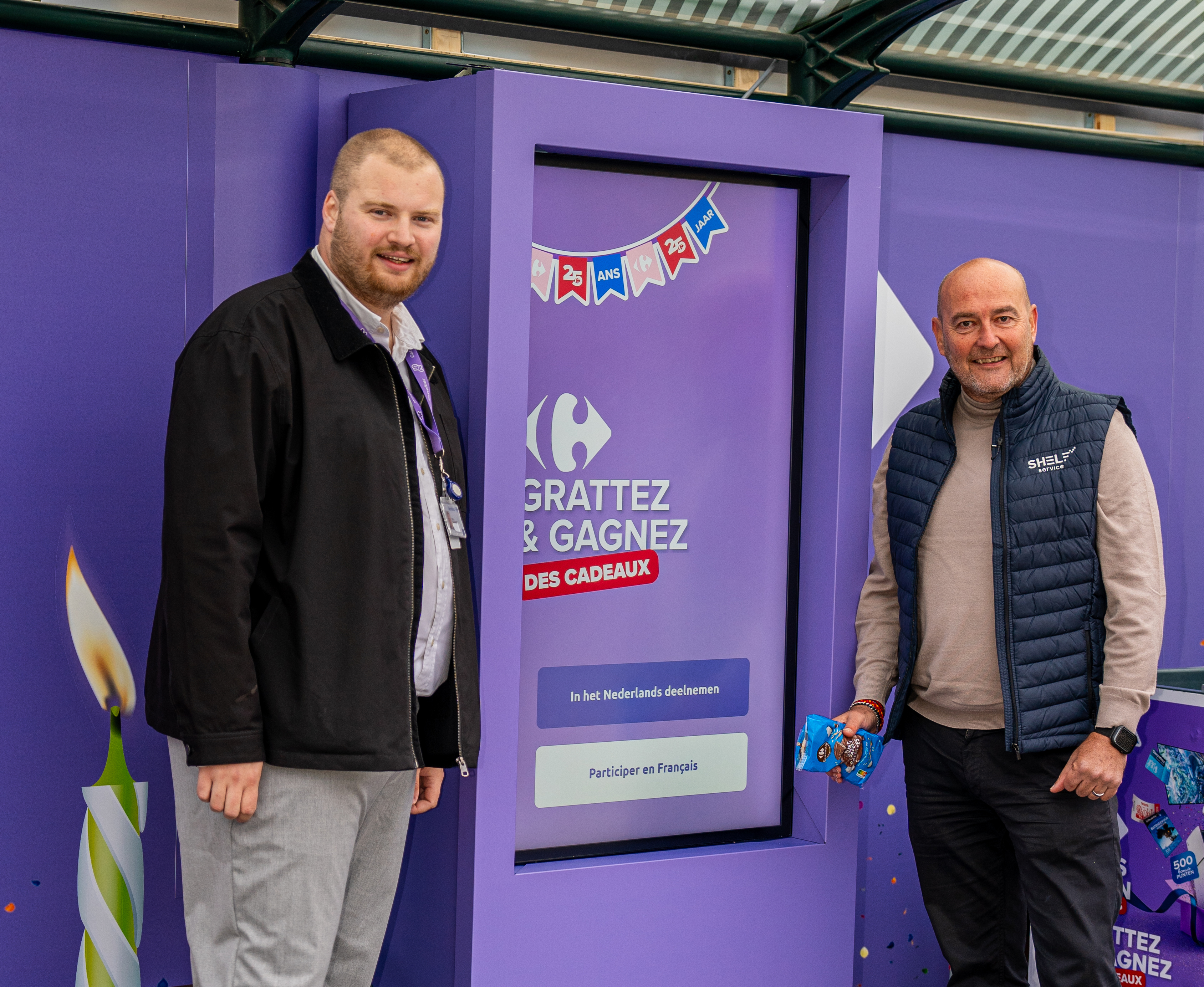 Een kwarteeuw! Zo’n verjaardag mag niet ongemerkt voorbij gaan en moet dan ook waardig en origineel worden gevierd. Dat realiseerde Shelf Service om het 25-jarig jubileum van Carrefour in België te vieren. Het startschot voor het vijf weken durende verjaardagsfeest werd gegeven op het Louizaplein in Brussel. Daarmee kozen Shelf Service en Carrefour voor een zowel unieke als symbolische plek in de hoofdstad. En ze zorgden ook nog voor een primeur: een ‘Scratch & Win’ op digitaal scherm!